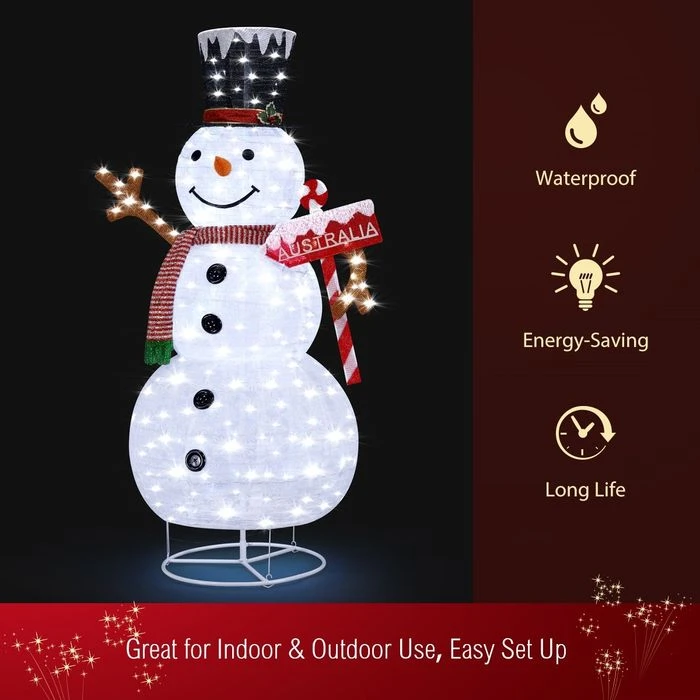Add an exquisite glamour and more joy to your home Christmas holiday with a 3D Christmas Snowman Light with 200 LEDs. Constructed of a foldable frame, this Christmas light is easy to set up and space-saving. Built with 200 LED bulbs, the outside Christmas light is energy-saving and services for a long time. Great for indoor and outdoor use, the smiling snowman Christmas LED light is perfect for decorating your living room, doorway, patio and backyard. Light up your Christmas festival with the Christmas decorations!
