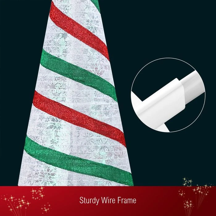 180cm Ribbon Christmas Tree Light Decoration LED Strip Ornaments Xmas Home Outdoor Display Folding Star Topper 8 Flickering Effects