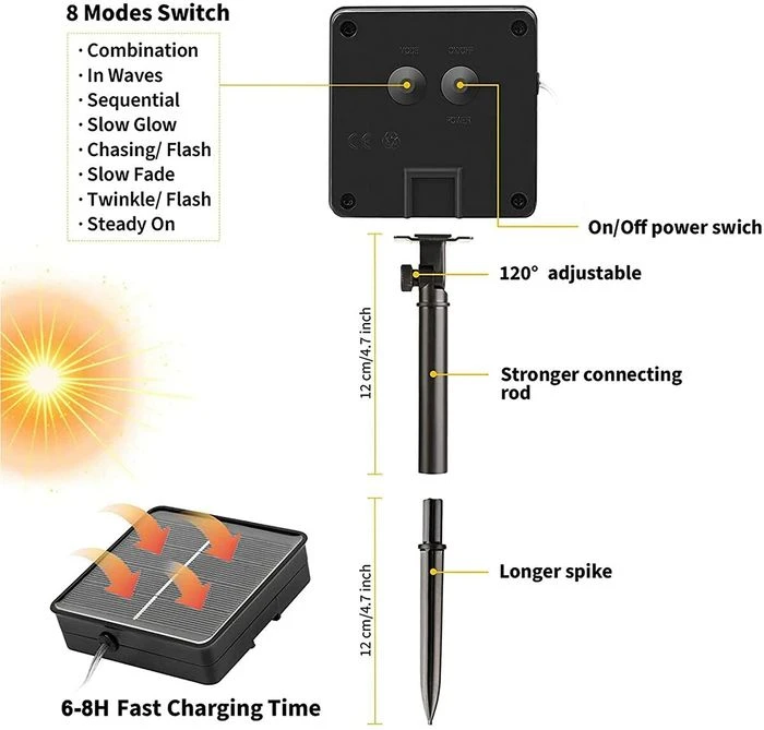 - 8 Lighting Modes: Press the button, 8 lighting modes for casually choose to satisfy your diverse needs, include Combination, In Waves, Sequential, Slo-glo, Chasing/Flash, Slow Fade, Twinkle/Flash, Steady On.