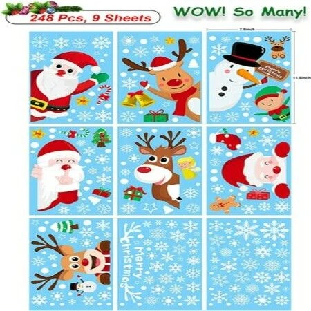 248 Pcs Christmas Window Clings Snowflakes Christmas Decorations Double Sided Static Cling Window