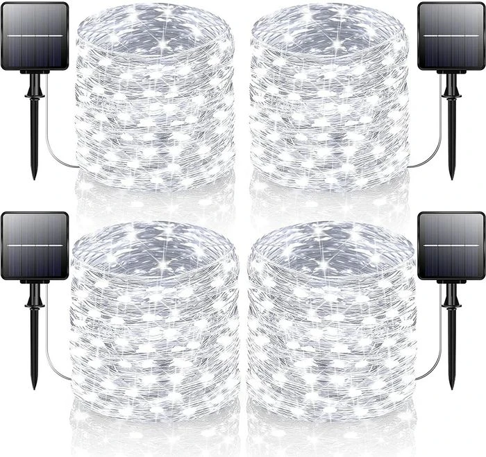 - 2022 New Upgraded 4-Pack Super Bright Solar String Lights: Super Bright 4-Pack Total 160FT 400 LED with Upgraded Larger LED Beads, Unique 8 Lighting Modes & Memory Function & Auto On/Off, Higher Conversion with Larger Size Solar Panel, Larger Capacity Battery, IP65 Waterproof Performance.