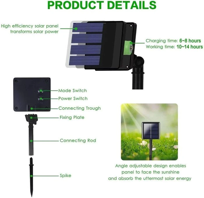 - Auto On/Off: It automatically charge at daytime and light up at night. set-in memory chip, save the last use mode automatically, no need to reset.