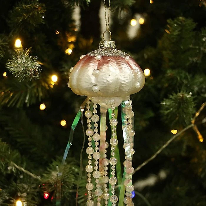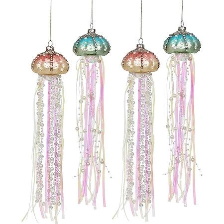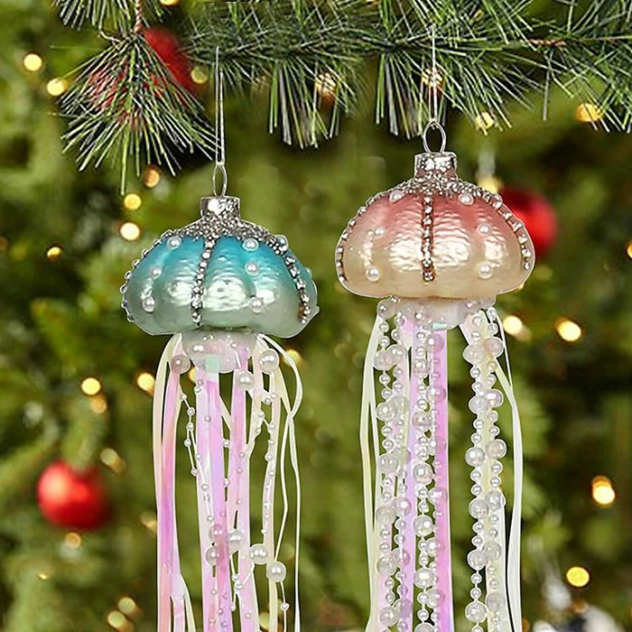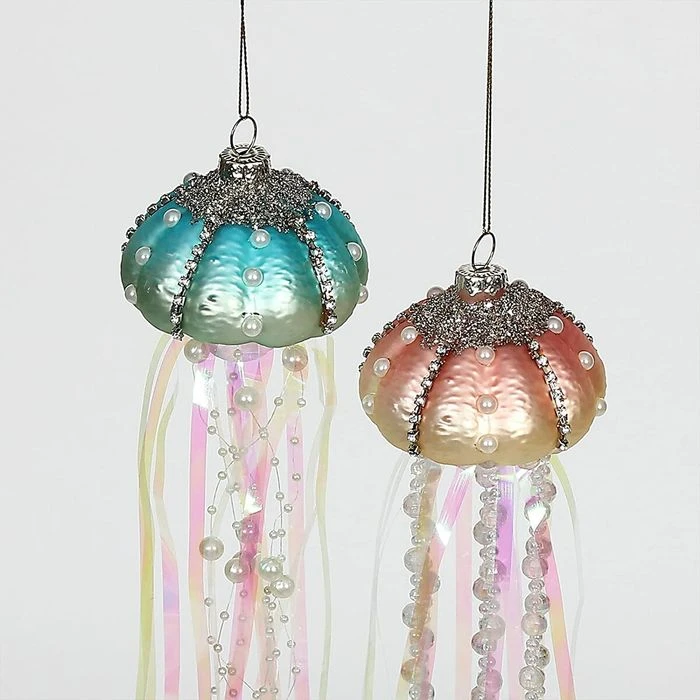 4Pack Jellyfish Christmas Tree Ornaments Jewels And Pearls Coastal Christmas Tree Decorations