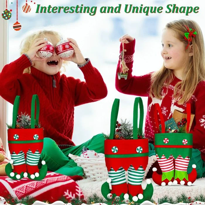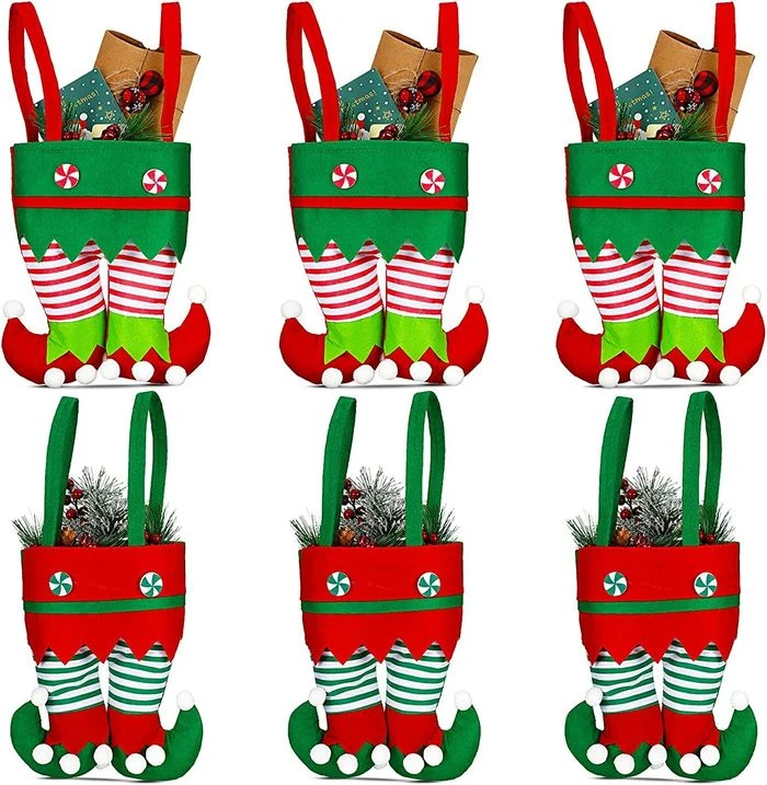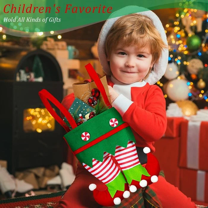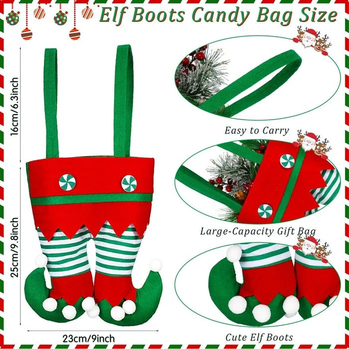 Christmas decorations: red and green Christmas bag, Elf Boot pants gift bags, you can store red wine, chocolates, candy or other food, put in your home, table or under the Christmas tree.