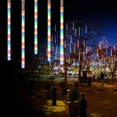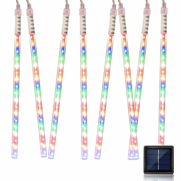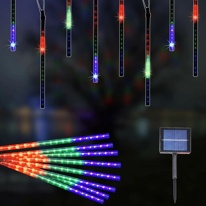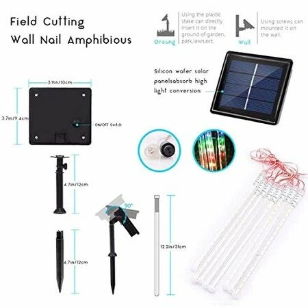 Solar meteor lights have super bright LED chips, provide 360 degree shining angles, which makes the falling rain lights MUCH BRIGHTER and BEAUTIFUL. The light of every bulb turns on and out one by one in sequence and quickly just like meteor shower or falling snow in the night sky. Solar meteor shower lights no battery or electricity required, charge by the sunlight, can work up to 6 hours or more when fully charged, low power consumption and energy saving