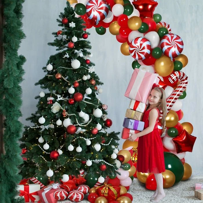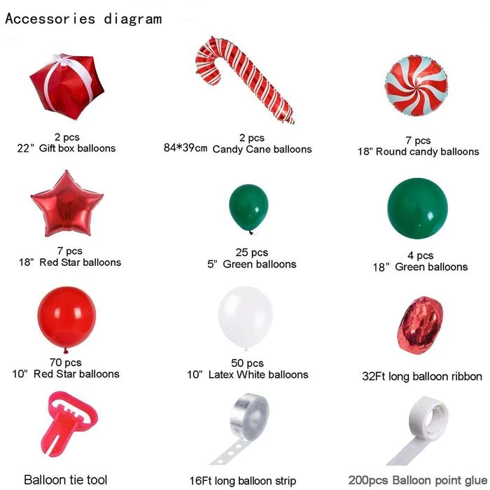 Fast Easy Assembly-The first step is to blow up balloons of different shapes and sizes. the second step, insert them into the plastic garland-making strip. the third step, hang the balloon garland according to your favorite shape. In just 30 minutes you will get a beautiful Christmas balloon garland party background.