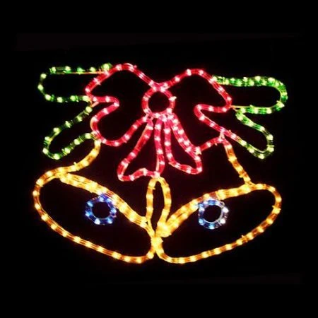 Double Bell with Traditional Holly and Bow Rope Light Display.