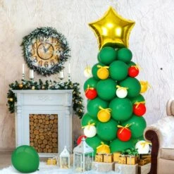 Christmas Balloon Garland Arch Kit Red White Candy Balloons Gift Box Balloons Red Star Balloons