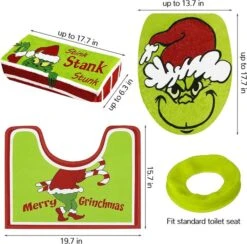 Christmas Bathroom Sets – Grinchs Decor Toilet Seat Cover And Rug Set Of 4 For Indoor Home