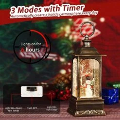 Christmas Decorations Musical Snow Globe Lantern, 3 AA Battery Operated & USB Powered, Snowman