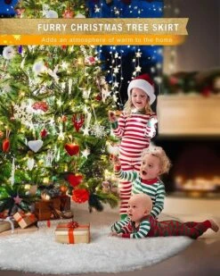 48 Inches Christmas Tree Skirt For Xmas Tree Holiday Party Decorations White Plush (White)