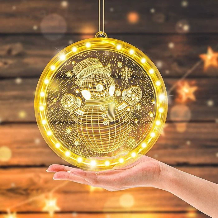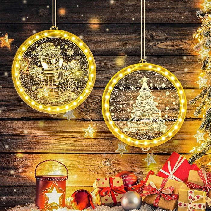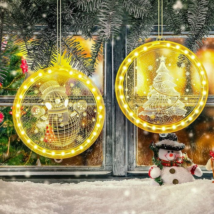 Christmas Decorative 3D Hanging Lights 2 PCS Christmas Window Light Hanging Lighted Window Decorations For Indoor Outdoor Windows Decorations (Snowman, Xmas Tree)