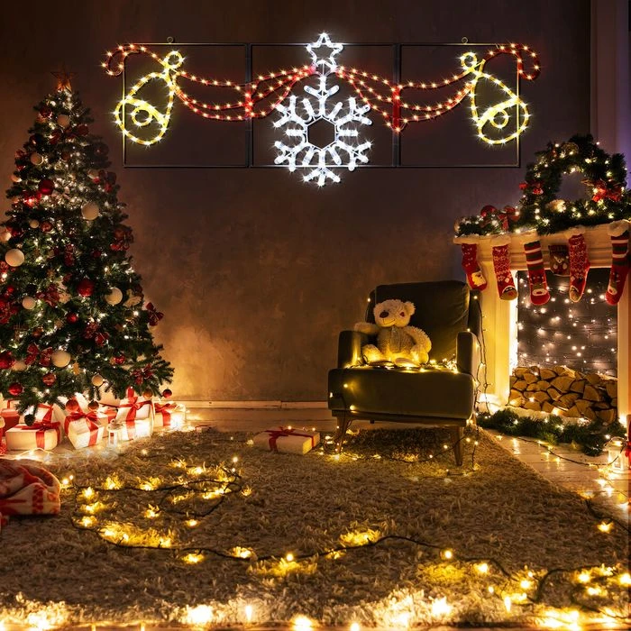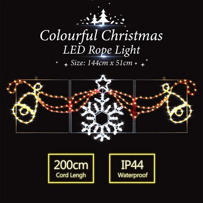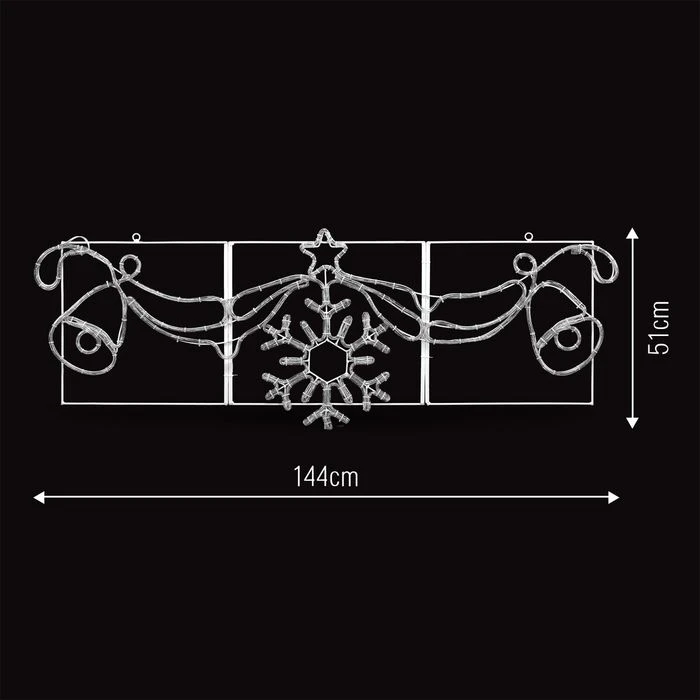 Christmas LED Light Decor Strip Rope Xmas Snowflake Bell Holiday Ornament Outdoor Indoor 145x53cm XL Size