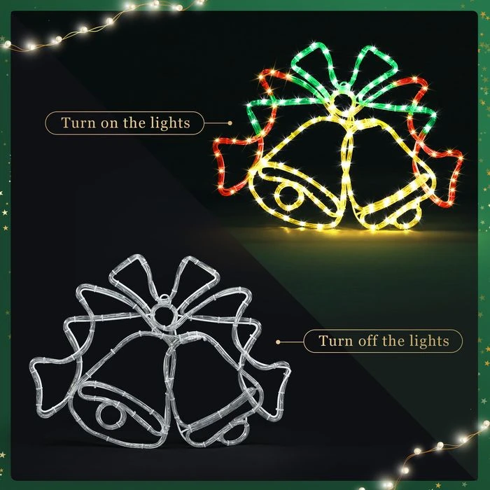 Christmas LED Light Strip Rope Xmas Bell Decor Holiday Ornament Outdoor Indoor 60 X 40CM