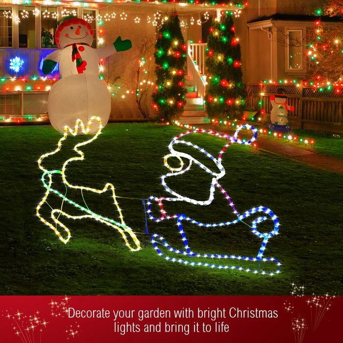 Christmas Light Santa Claus Sleigh Reindeer LED Strip Rope Xmas Decor Holiday Ornament Outdoor Indoor 150x75cm XL Size