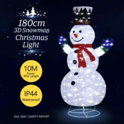 3D Christmas Snowman Light Xmas LED Lighted Holiday Ornaments Outdoor Decorations 180CM