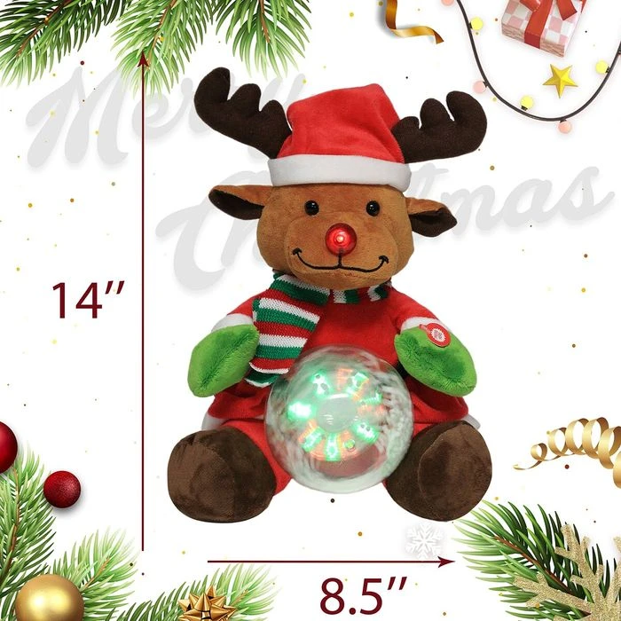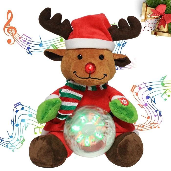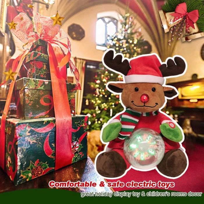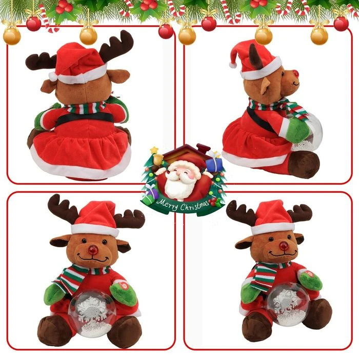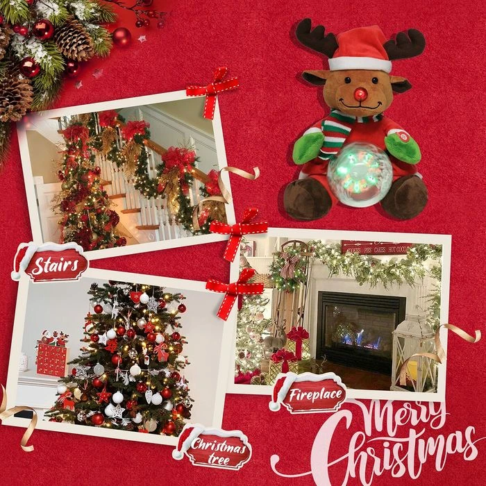 Cute and realistic toy elk: the elk with a Christmas hat and a checkered scarf gives you the most sincere holiday wishes, can be used as a table decoration, very festive, let’s have a wonderful Christmas with music .