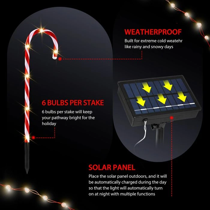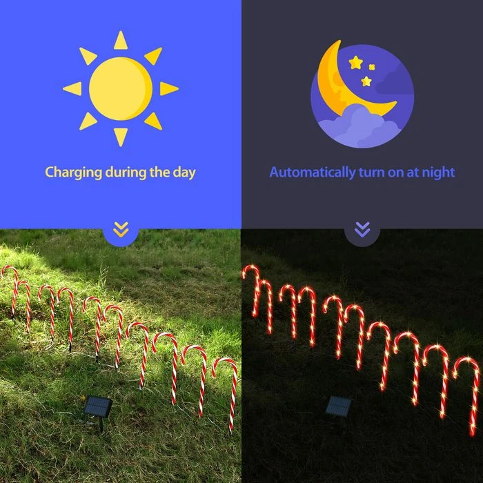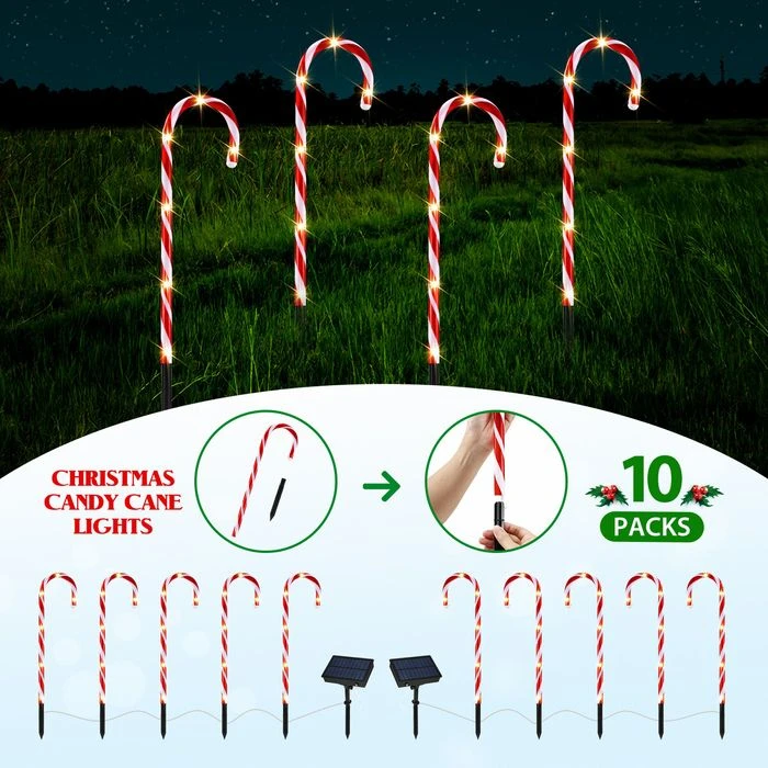 Christmas Solar Light LED Candy Cane Outdoor Garden Decoration Pathway Holiday Ornament 10Pcs