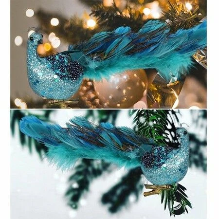 Christmas Theme Xmas Tree Simulated Peacock Decoration,Fluff And Sequin Embellishment