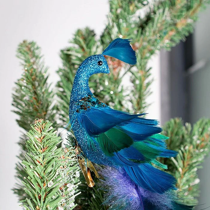 Christmas Together Ornament Christmas Tree Ornaments Gorgeous And Delicate Glittered Bird Faux Peacock Decoration Clip On Turquoise Peacock For Decor Yard Garden Large Ornament Balls outside