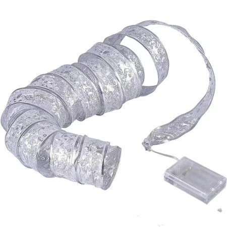 Christmas Tree Ribbon Xmas Fairy Lights, Battery Operated Decoration for Xmas Party Decorations (Gold Ribbon, Warm Yellow Light)