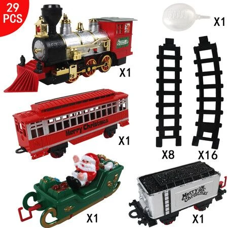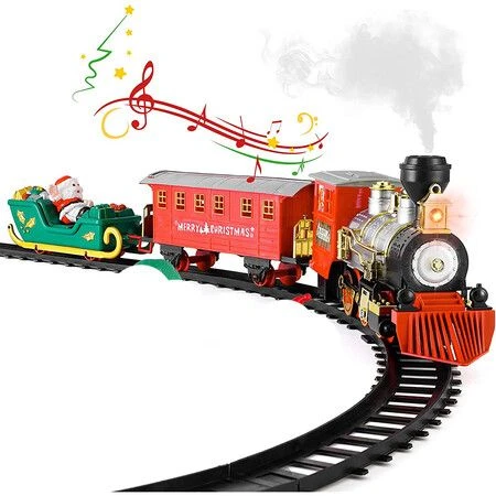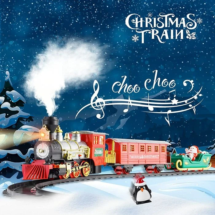 Electric Toy Train Set Around Christmas Tree With Smokes For Kids Ages 3 And Up Boys Girls
