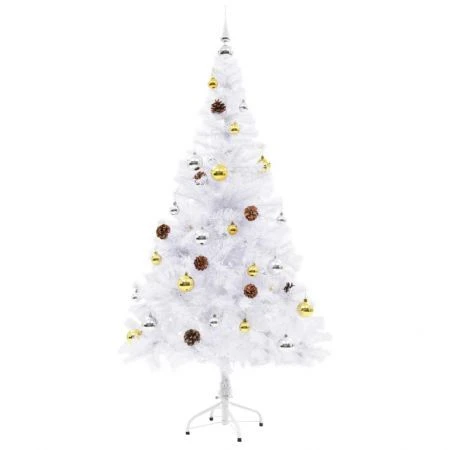 The fully-decorated Christmas tree has stylish illuminated branches and colourful baubles. Without any additional decoration, our lovely tree will create a nice atmosphere in the coming Christmas. The artificial tree is made of PVC, which is lightweight and weather resistant. This lovely Christmas tree has an IP rating of IP44 and therefore suitable for both indoor and outdoor use. The illuminated branches contain 150 high-powered LEDs, which are very energy efficient and emit a bright warm light. Designed with 4 different lighting effects; continuous lighting, twinkling, crossfade and slowly glowing mode, the lights will beautifully light up in your preferred pattern. It will be a real eye-catcher, especially in the evening. In the house, the tree will also serve as an ambient light source. The branches can be arranged in any shape. This Christmas tree can be used every year, making it a very economical choice compared to a real tree. It also has a steel base for stability. Delivery includes one Christmas tree, one tree topper, twenty 4 cm baubles, twenty 6 cm baubles, twelve pine cones and one adapter. Assembly is easy.