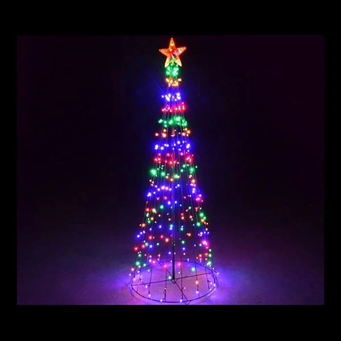 This Giant Multi-Colour LED Christmas Tree is a dazzling display of Christmas spirit! Topped with a lighted star, this tree also features 17 strands of multi-coloured lights around a sturdy powder-coated steel frame and a heavy duty base. Display it outdoors or in your home to add a bit of twinkle to your holiday season.