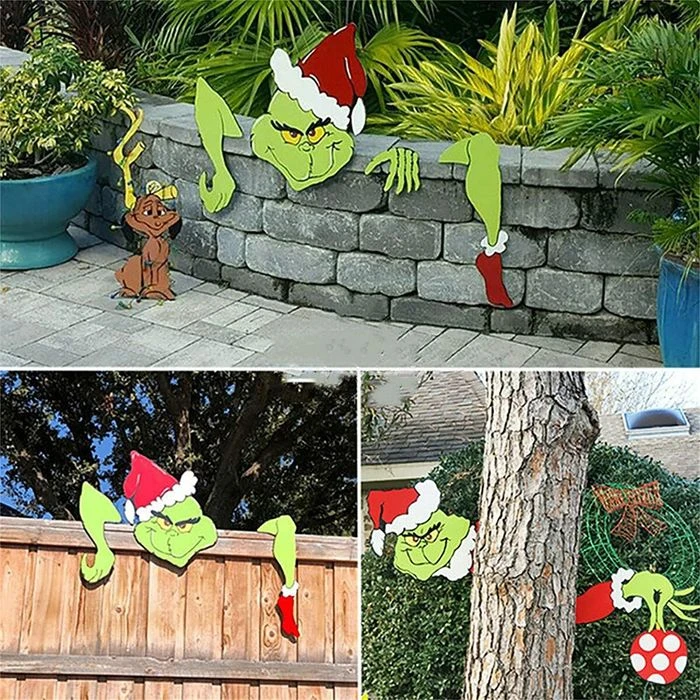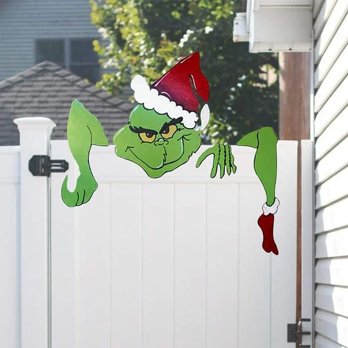 If you are looking for a christmas yard decorations outdoor ornament that you can see on the street and is sure to attract praise from your neighbors, this Fence Peeker is for you! Add glamour to your Christmas holiday with this eye-catching Grinch. Charming Grinch Fence Peeker will Decorate your home or fenced outdoor space with this wonderful winter or fall front door wreath for the holiday season.
