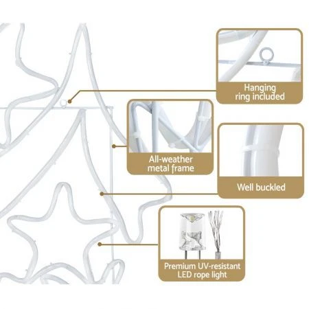 Bring the brilliance of Christmas to your home with our Jingle Jollys LED Merry Christmas Light. Featuring strings of super-bright energy-saving LED lights, the UV-resistant rope light is set in an all-weather iron frame spelling out the festive greeting, Merry Christmas. The long power cable gives you more flexibility on where you can set up the light. You can place it indoors like shopping mall, balcony or outdoors on your front lawn for all your neighbours to appreciate. And you do not need to take the light down as soon as Christmas is over. It is water-repellent and weather-resistant, so you can leave it out well into the New Year. Create a lively and bright Christmas ambience throughout the season.