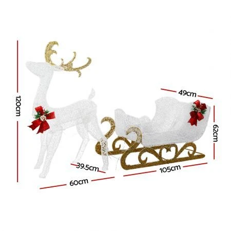 Decorate your home with Jingle Jollys stunning LED Reindeer Sleigh. This beautiful reindeer and sleigh decoration set paired with decorative lighting is sure to brighten up your Christmas nights. Featuring 215 energy-saving LED lights with a free-standing design, this Christmas decoration set gives you the flexibility to light up either the reindeer individually or whole reindeer sleigh set, depending on your mood.