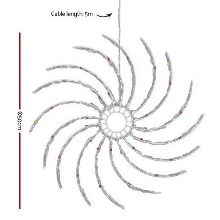 Bring the brilliance of Christmas to your home with our mesmerising Jingle Jollys LED Spinner Light that has 128 super bright energy-saving LED bulbs set in a sturdy white metal frame. The spinner light glows in four colours (red, green, yellow and blue) and as the name suggests, the bulbs change colour in a spinning motion. You can adjust the spinning speed and even set it to zero to stop the spinning altogether. The 9m long power cable gives you more flexibility on where you can set up the tree. Hook the spinner light up indoors in your living room or outdoors for all your neighbours appreciate. Create a lively and bright Christmas ambience throughout the season.