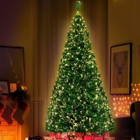 Make it a beautiful Christmas with our fine faux Jingle Jollys LED Christmas Tree to light up the occasion. Looking ever so real, the 2.1m tree features well-placed and generous tips for an extra-thick and lush look, with plenty of space to hang your favourite ornaments. The tree is symmetrical and compact with strong bushy branches that fan out wondrously. Better still, the tree comes with warm-white fibre-optic lights to brighten the ambience beautifully. No need to purchase and hang up extra string lights! Not least, the tree is easy to assemble and disassemble for storage until the next yuletide season comes along. Share the spirit of the season with our authentic-looking faux Christmas tree and add more joy to the most wonderful time of the year for everyone.