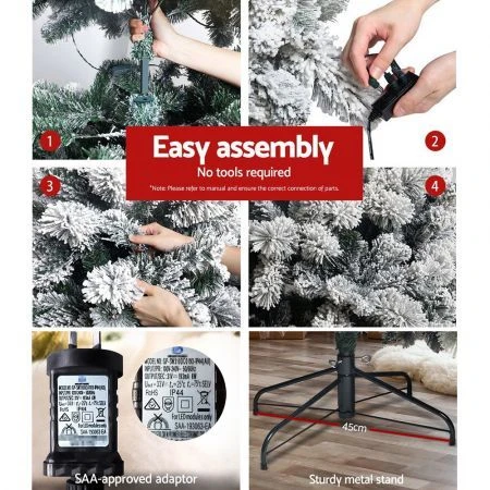 Make it a beautiful white Christmas with our fine faux Jingle Jollys Snowy LED Christmas Tree to spruce up the occasion. Looking ever so real, the 1.8m tall tree features well-placed and generous PVC tips for an extra-thick and lush look, with plenty of space to hang your favourite ornaments. The tree is symmetrical and compact with strong bushy branches that fan out wondrously. Even better, those tips come beautifully snow-sprayed to instantly transform your home into a winter wonderland. Plus, the tree comes with 350 long-lasting LED lights to brighten the yuletide ambience beautifully. Not least, the tree is easy to assemble and disassemble for storage until the next yuletide season comes along.