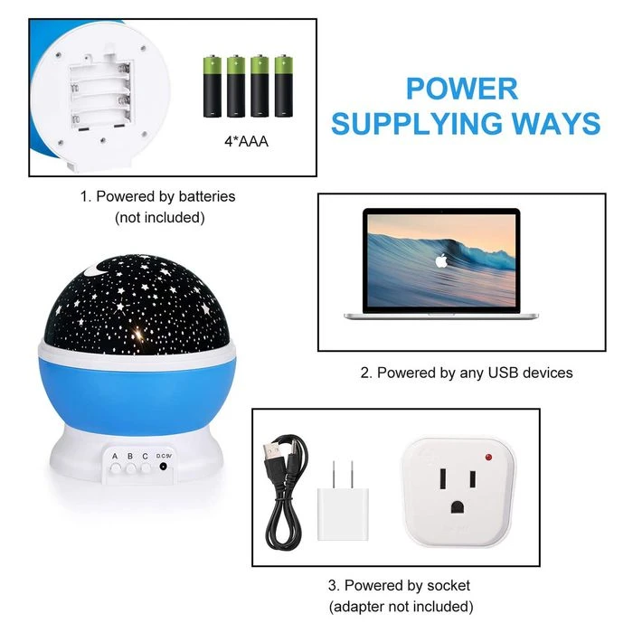 Night Light for Kids, Moon Star Projector – 4 LED Bulbs 8 Light Color Changing with USB Cable, 360 Degree Rotation, Romantic Night Lighting for Baby Kids Women, Christmas Party Bedroom Decoration