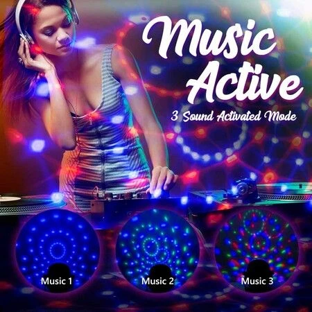 Party Disco Lights Decorations for Adults DJ Ball Strobe Lighting Projector LED Rotating Flashing Sound Activated RGB Rave Dance Lamp for Kids Birthday Family Gathering Christmas Bar Pub