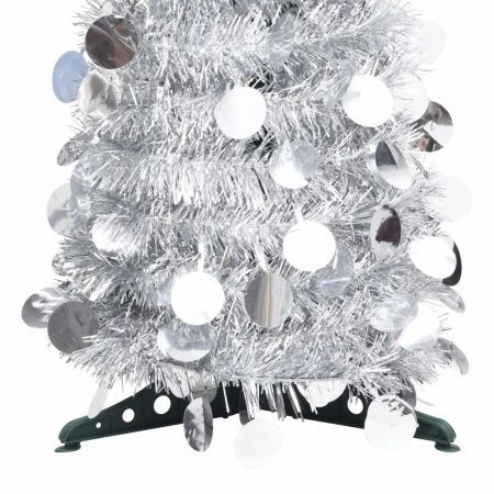 Our shiny silver pop-up artificial Christmas tree creates a nice and unique atmosphere in the soon approaching Christmas. This lovely Christmas tree, made of PET material, is lightweight and can collapse down into a tiny shape for easy storage. The holiday decoration can be used again every year, making it a very economical choice compared to a real tree. Additionally, it can be used both indoors and outdoors.