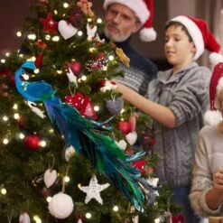 Christmas Theme Xmas Tree Simulated Peacock Decoration,Fluff And Sequin Embellishment