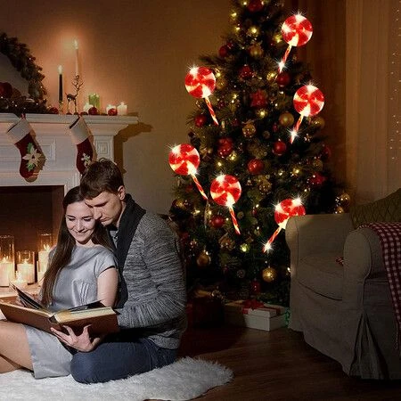 Solar Christmas Candy Cane Lights Solar Lawn Lamp Outdoor LED Christmas Decor Garden Pathway Markers Candy Lights