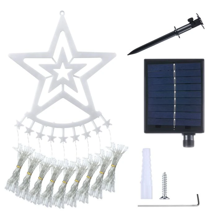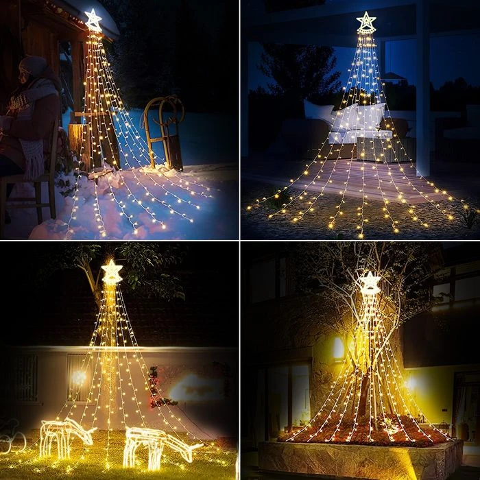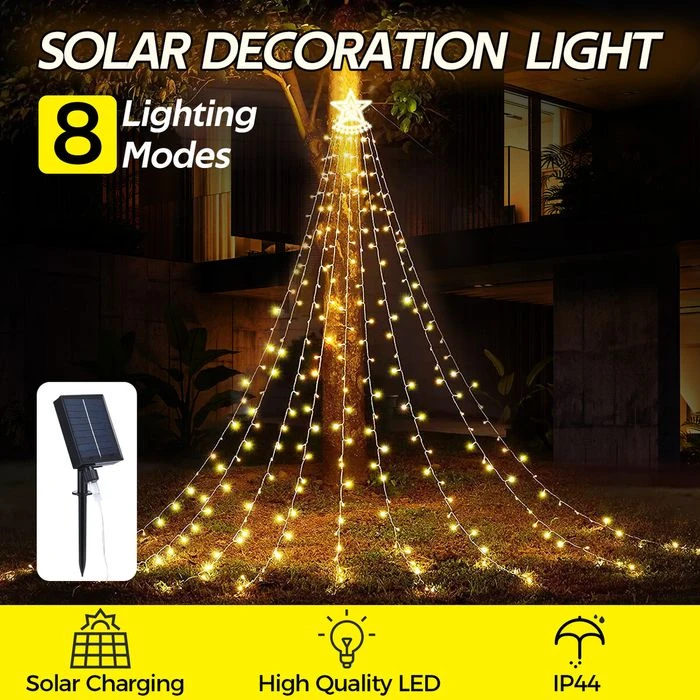 Solar LED String Light Waterfall Fairy Christmas Tree Hanging Decoration Ornament Star Topper Strip Indoor Outdoor 350 LED 9 Strands 8 Lighting Modes