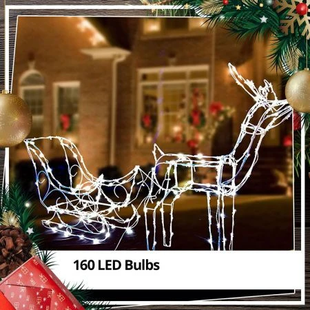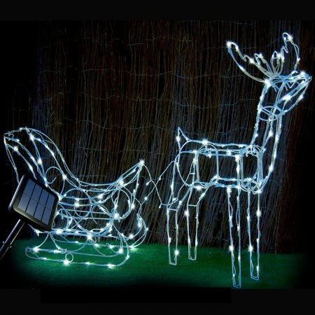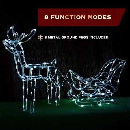 This 160 LED Cool White Deer with Sleigh will bring Christmas spirit into your neighbourhood. It is a wonderful decor in your yard plus it’s solar powered so you don’t have to worry about electricity cost. Leave it out in the sun to charge during the day and it will automatically turn on the lights at nightfall. There is no need for you to turn it off or on each night. Made with 160 individual cool white LED bulbs that last up to 4-5 hours on steady mode or 6-8 hours on flashing mode. It includes garden stakes and metal pegs to withstand the elements. Decorate your home now with this Christmas decor to give it a festive look.
