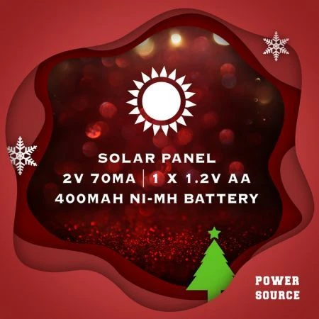 * Power Source: Solar Panel 2V 70mA, x 1.2V AA 400mAh Ni-MH Battery