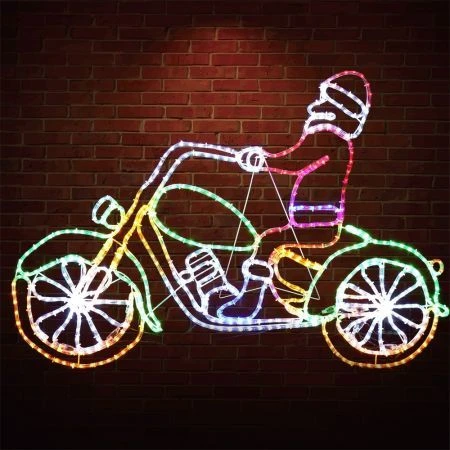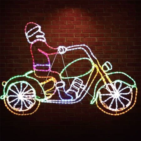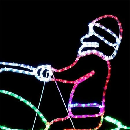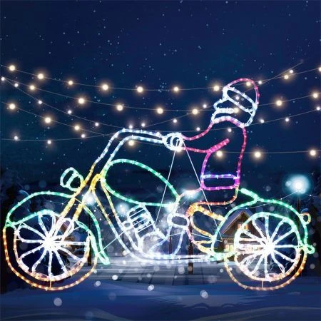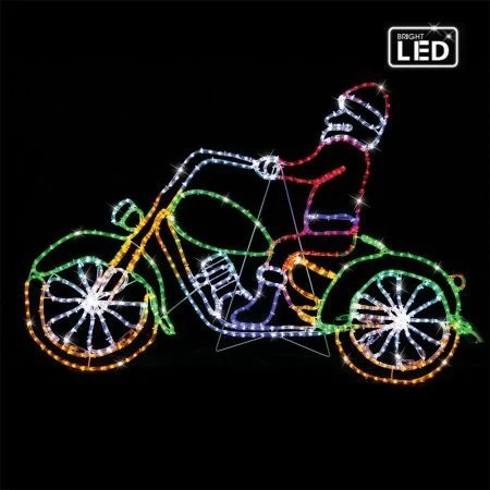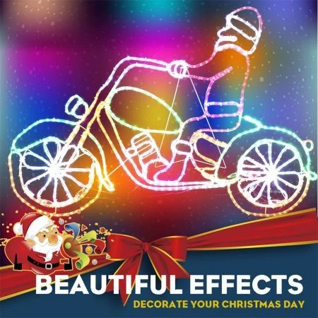 Consisting of Santa on a cool, multi-coloured motorcycle, the display reaches 1.3m long and 90cm tall, capturing attention easily. It has 36 LEDs per metre and will be a great addition to your house exterior or to bring some life into your home. You can set and forget your light show or easily switch between different flashing effects or a steady effect. The wiring is covered in a sleek clear material that holds each individual bulb in place for a stunning look. A 5m black lead cable is included in the box and a steel metal frame holding everything together makes for easy set-up.