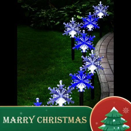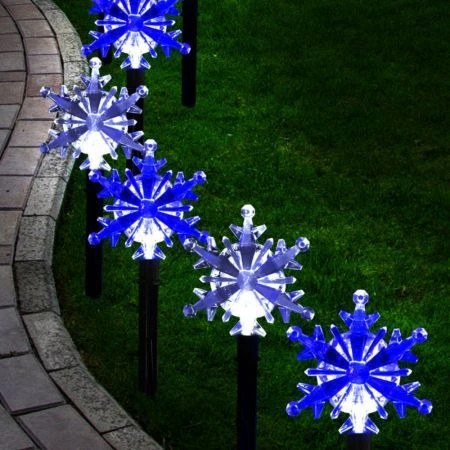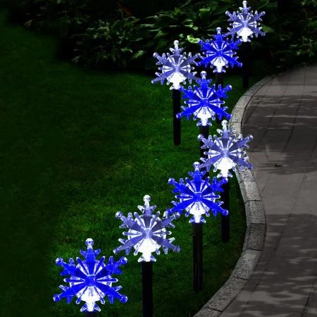 Brighten up your Christmas display and save power with this solar-powered Snowflake LED Path Light! These set of 8 snowflake path lights are perfect for placing in borders, paths, driveways and flowerbeds. This product will guarantee to impress and add the wow factor to you Christmas display!