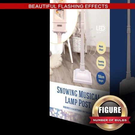 * Light Colours: White LEDs Inside. White Lamp Post * Contents: Snowing Musical Lantern, Poles, Connectors and Base
