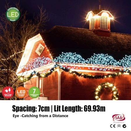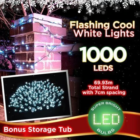 Experience the holidays in style with this set of vibrant holiday lights that will bring the spirit of Christmas into your neighbourhood and home. Made with 1000 LED bulbs that glow a cool white, this design comes in a strand of individual lightbulbs spaced 7cm apart that can be used to line a rooftop. The LED light bulb feature is one of the best improvements in the industry, as it doesn’t burn nearly as hot as regular bulbs, yet the colours remain just as bright. It’s integrated with 7 Flashing Effects that you can tweak depending on your preference and a steady glow that works for each holiday theme. The wiring is covered in a sleek green material that holds each bulb in place, with the cord having an overall length of 5m. It’s a pretty easy setup, as you need only attach it to a ledge and plug it in, keeping even the clean-up at the end of the holiday season just as easy. It’s a great addition to any setting.It can be used both inside your home and outside on the roof,making it one of the more flexible decoration pieces in your holiday setting. It comes with an Electronic Voltage Transformer to help regulate the electricity and voltage during use.It is also SAA approved, ensuring your safety and security while you celebrate the best time of the year. Spread joy this holiday season with this tub of 1000 Flashing Cool White Lights!