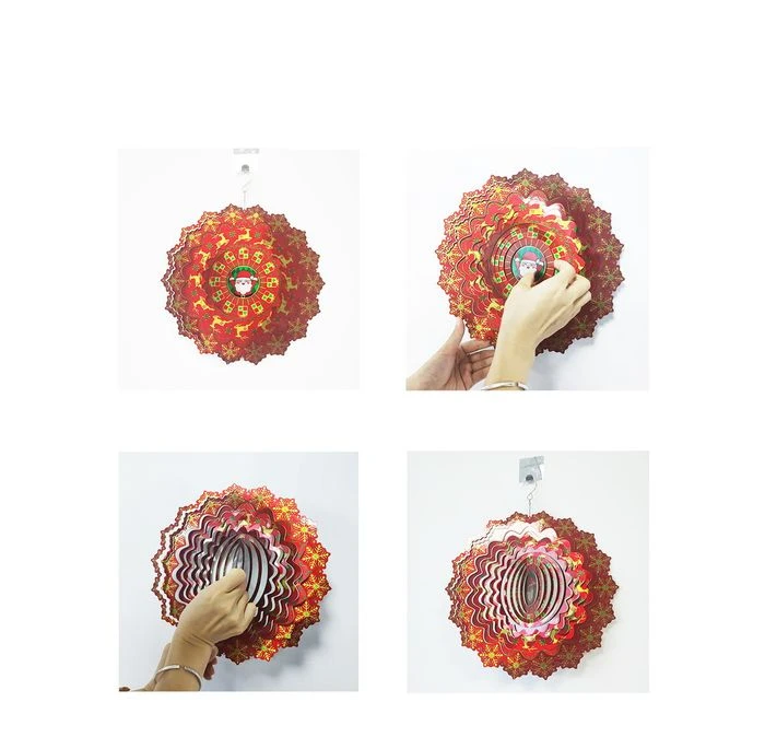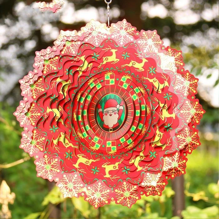 3D EFFECT WIND SCULPTURES & SPINNERS : Our garden wind spinner is made of stainless steel metal, it is ideal for indoor and outdoor decoration. Comes with a 360° swivel hook for easy hanging on a garden window or tree. Hang it anywhere you want at Christmas time. The 3D metal wind spinner rotates in the windy yard can take on different colors, making it more charming and gorgeous.This is a unique and beautiful Christmas tree wreath wind spinner. It adds a lot of fun to your Christmas with its stylish design and unique Christmas style. It combines a variety of popular elements, showing the charming traditional culture. The Shiny Christmas Wreath Wind Spinner can spin in the breeze, especially in sunlight or night light to help embody the sparkling effect, allowing you to enjoy a charming hanging decoration, beautiful and charming!